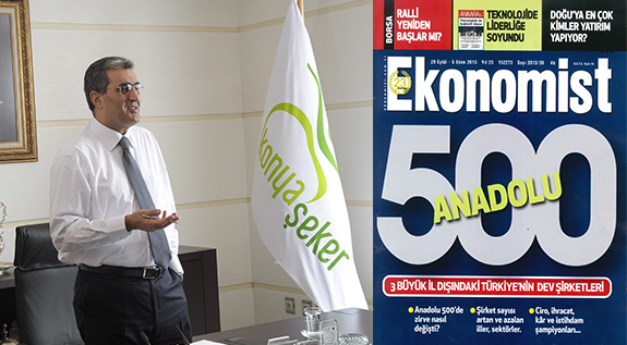 Ekonomist Dergisi’nin Türkiye Ekonomi Bankası’nın(TEB) katkılarıyla 10 yıldır sürdürdüğü “Anadolu’nun En Büyük 500 Şirketi” araştırması sonuçlandı. Şirketlerin 2012 yılı net satış veya cirolarına göre yapılan değerlendirme sonucunda ilk sırayı Denizli’de faaliyet gösteren Erbakır alırken, istikrarlı yükselişini sürdüren Konya Şeker Anadolu’nun en büyük 500 şirketi arasında 1 basamak yükselerek 8’inci sırada yer aldı ve ilk 10 içerisinde zirveye biraz daha yaklaştı. İstanbul, İzmir ve Ankara dışındaki iller bazında yapılan değerlendirme sonuçlarına göre, 2012’de Anadolu 500’ün zirvesinde Erbakır’dan sonra Kocaeli’den Kromsan Çelik Sanayii, ardından da Hatay’da faaliyet gösteren Tosçelik Profil bulunurken, Konya Şeker’le birlikte Konya’dan bu yıl 26 şirket ilk 500 sıralamasına girdi. Ekonomist Dergisi’nin araştırmasında Konya Şeker sektörel sıralamada ilk 3’teki yerini korurken, vergi öncesi karda 4’üncü, sektörel vergi öncesi kar da 1’inci, 2012 yılı verilerine göre öz sermaye sıralamasında ilk 5 içinde yer alırken, istihdam sıralamasında ise bir önceki yıla göre % 79’luk bir artış göstererek ilk 10 içinde oldu.